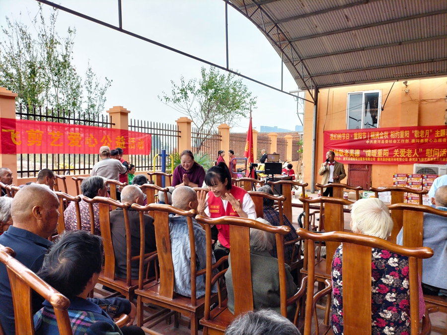 10月10日,爱心志愿者在唐河县滨河街道与老年人开展温情互动。 河南全媒体网讯连日来,河南省南阳市唐河县相继开展“我们的节日·重