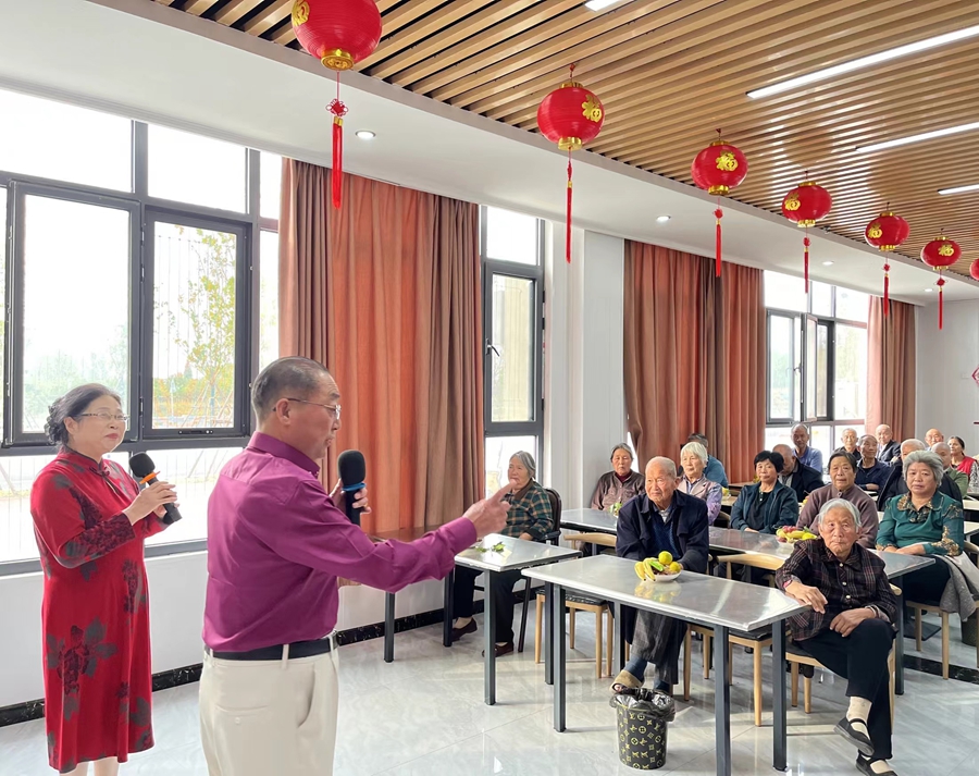 10月11日,戏曲名家在唐河县临港街道养老中心为老年人演唱传统戏曲。